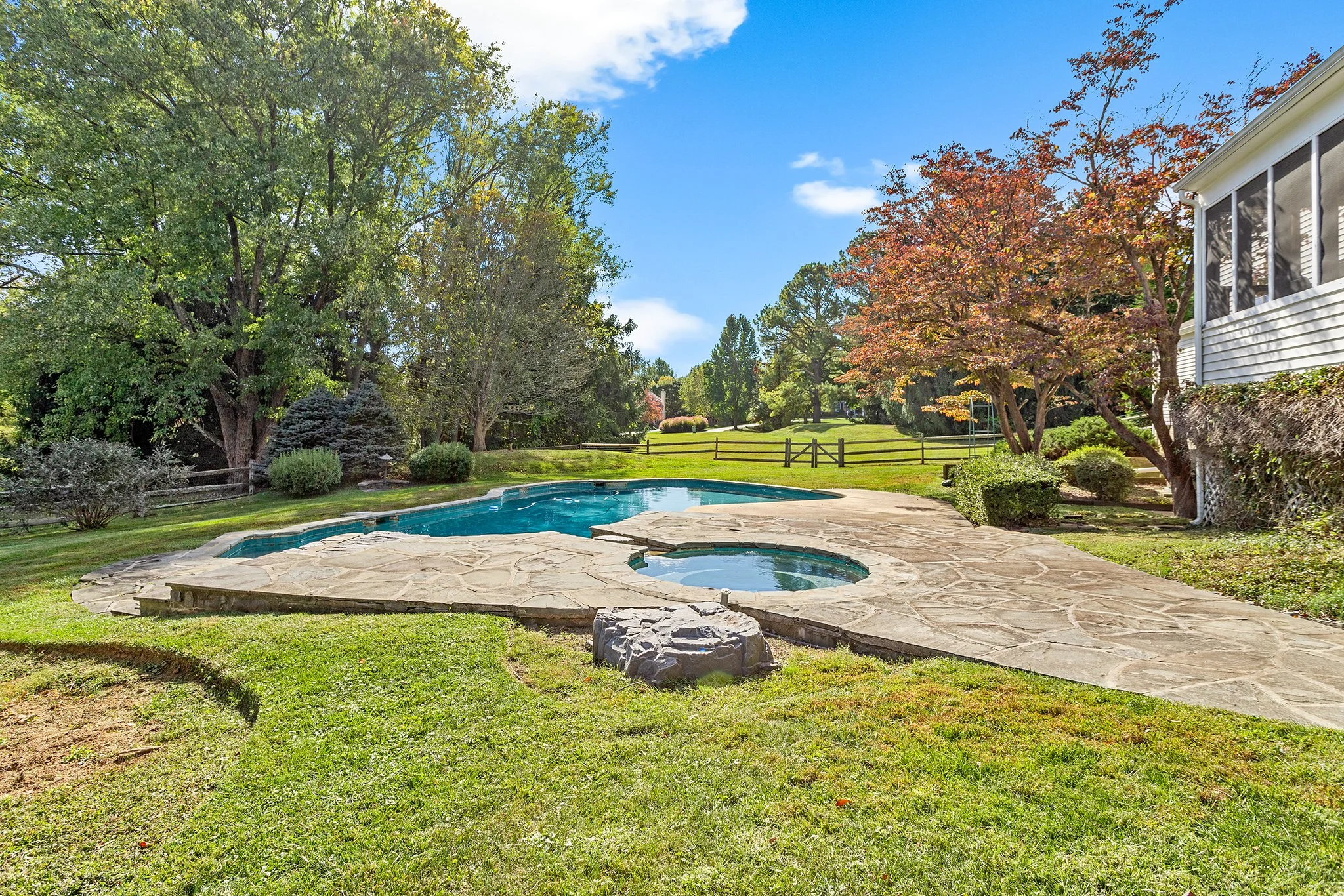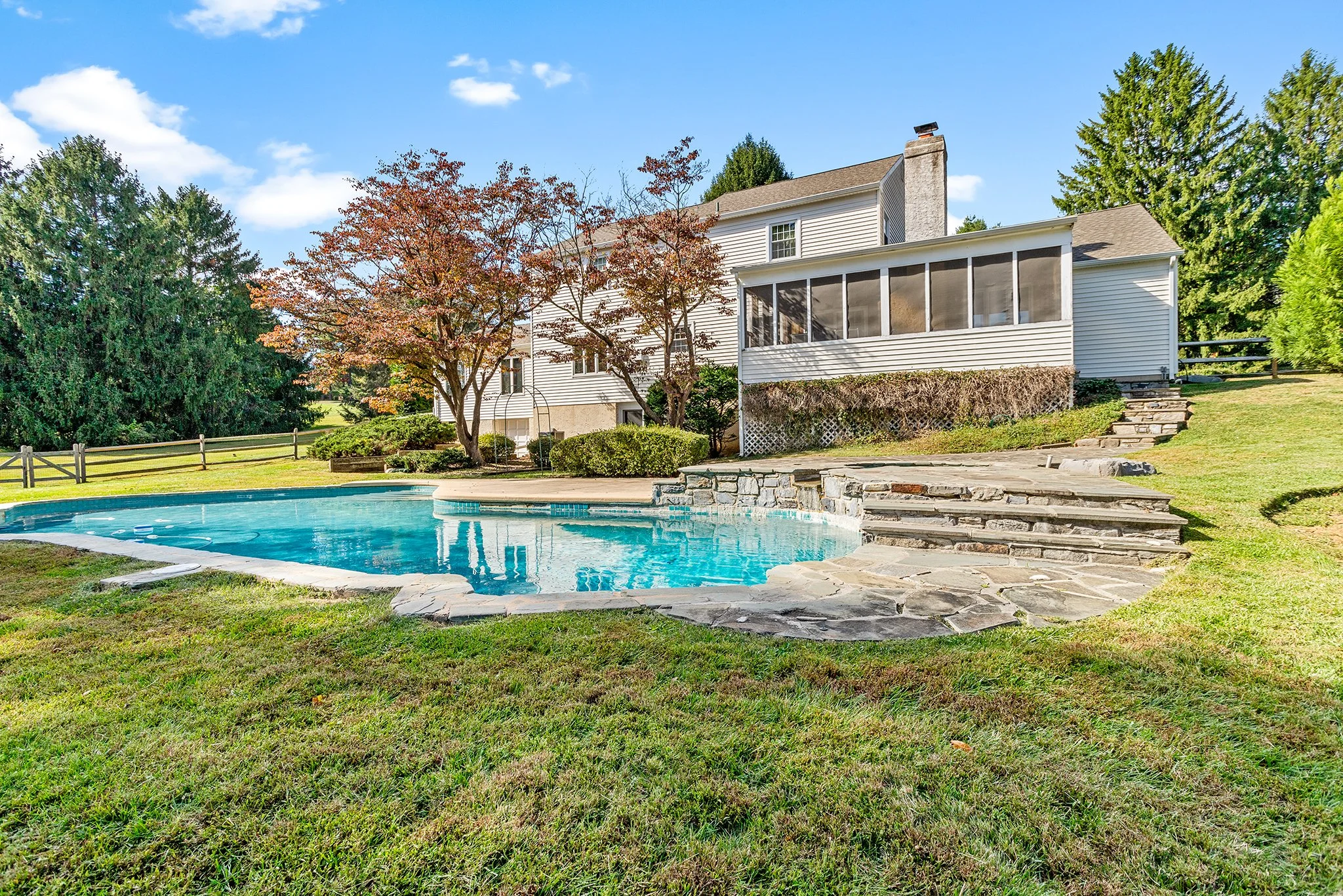Outside, the expansive yard is a private oasis featuring an inground pool, mature landscaping, and plenty of space for recreation or gardening—all tucked away in a tranquil setting with plenty of room to roam.