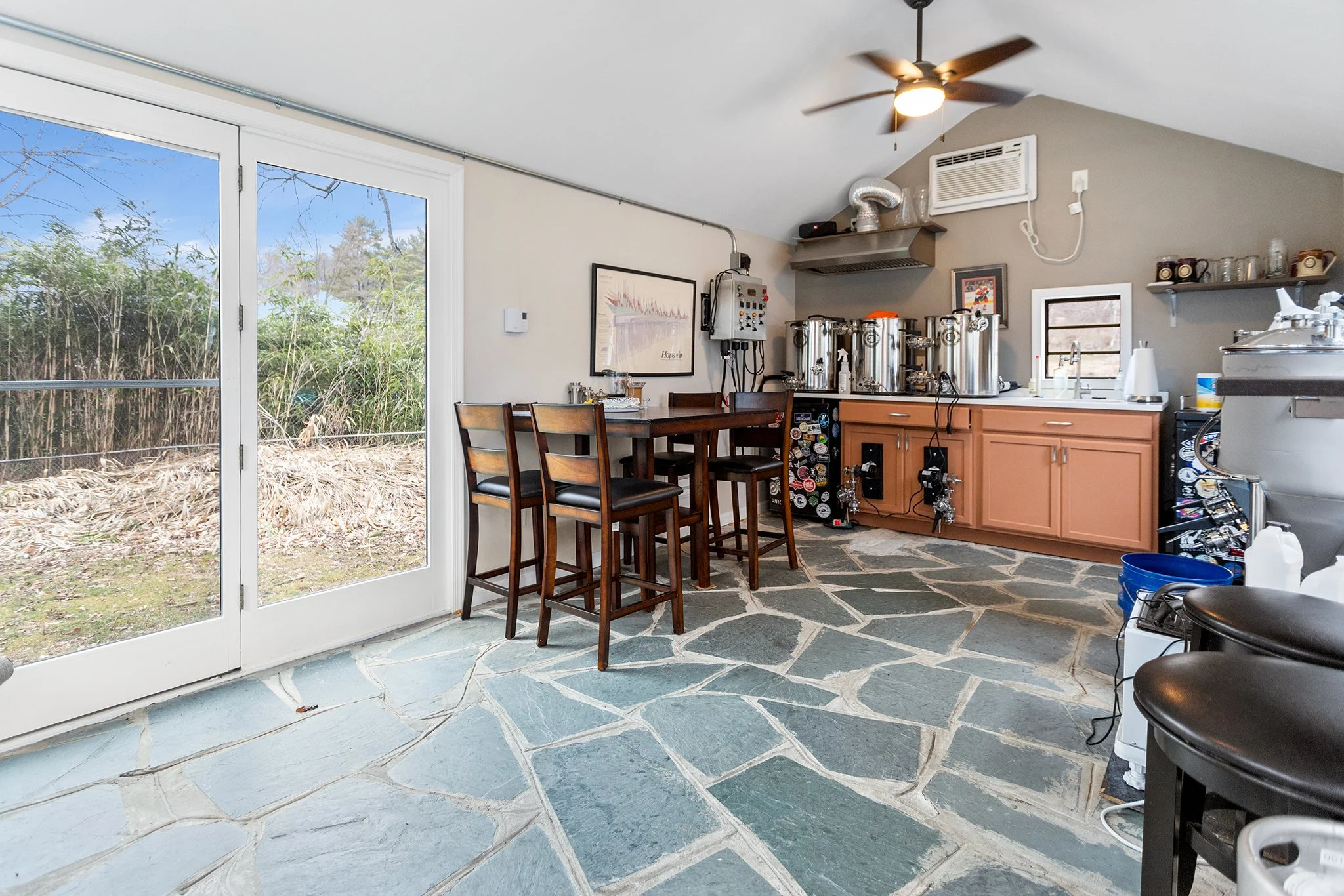But the true gem of this property lies outside. A converted shed in the backyard offers endless possibilities – whether you envision it as a home office, art studio, or gym, the choice is yours. The backyard with stone hardscape patio provides ample space for outdoor gatherings, gardening, or simply enjoying the beautiful weather with family and friends.