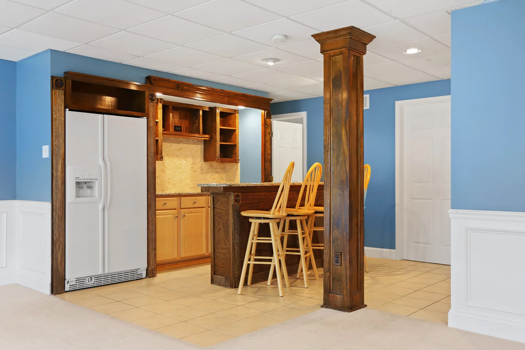 The finished daylight walkout basement is a wonderful additional living space. It includes a built in bar with second refrigerator for entertaining, an updated 1/2 bath and provides flexible space for a media room, home office, gym, or playroom, along with a generous storage area and access to a lower-level paver patio.