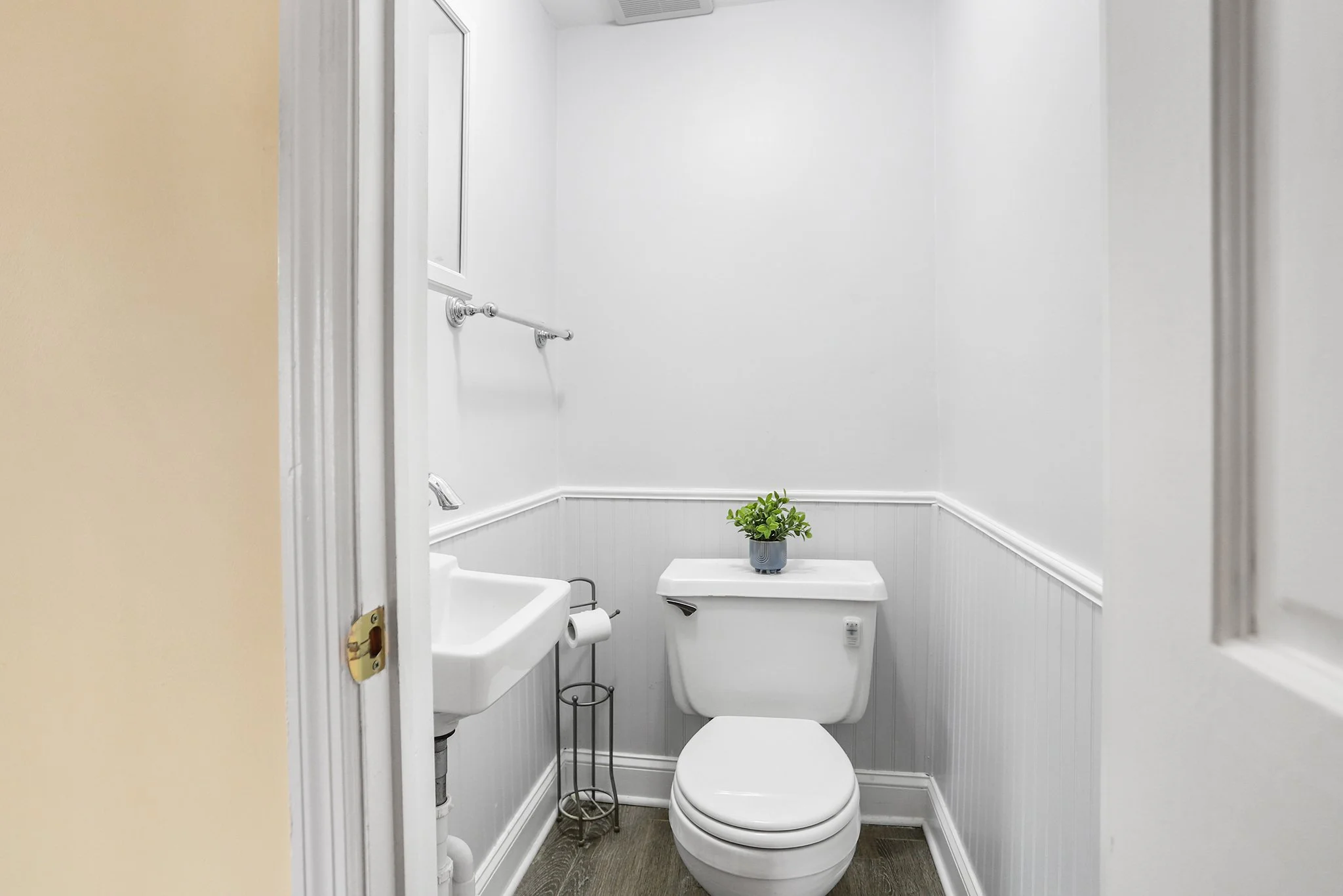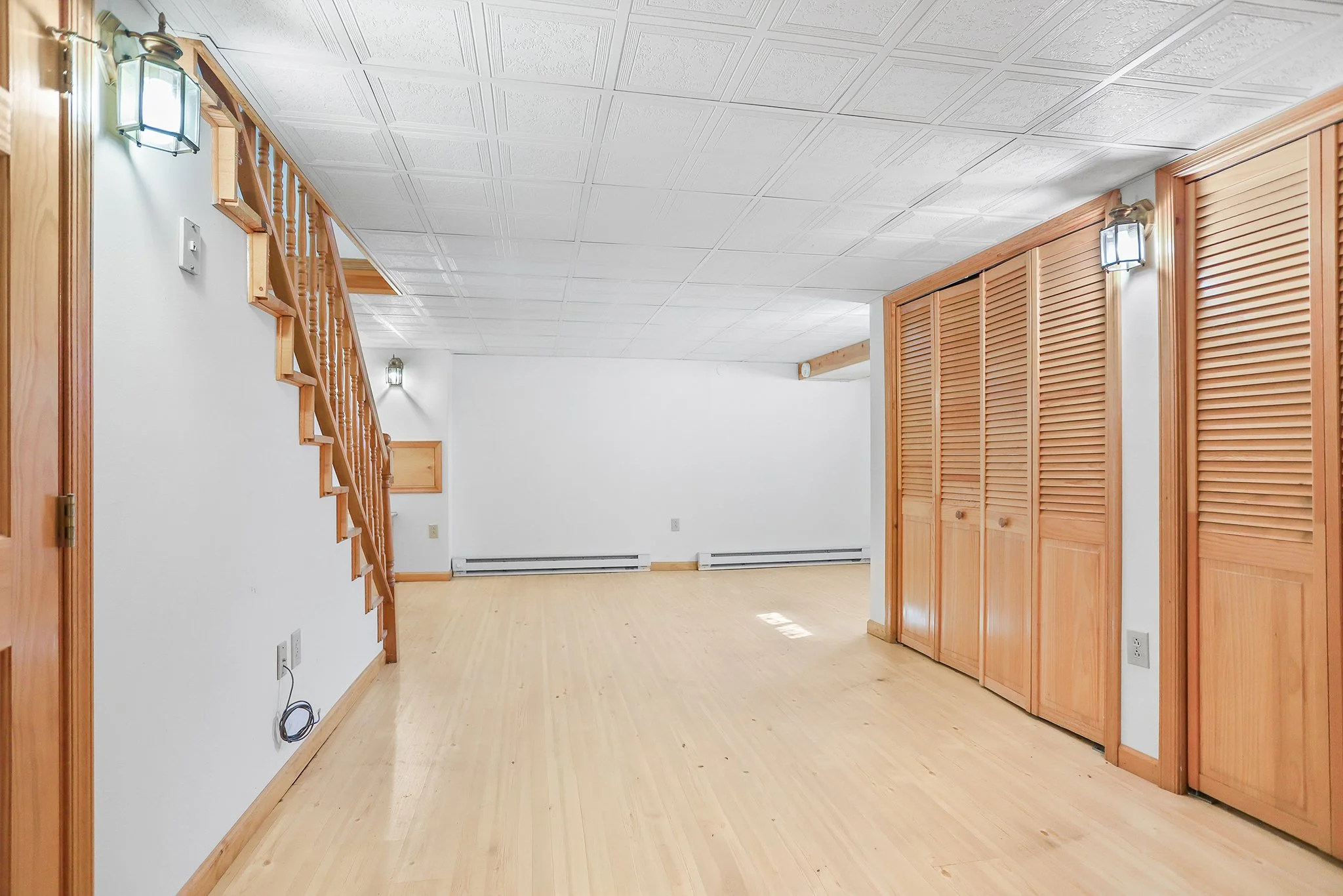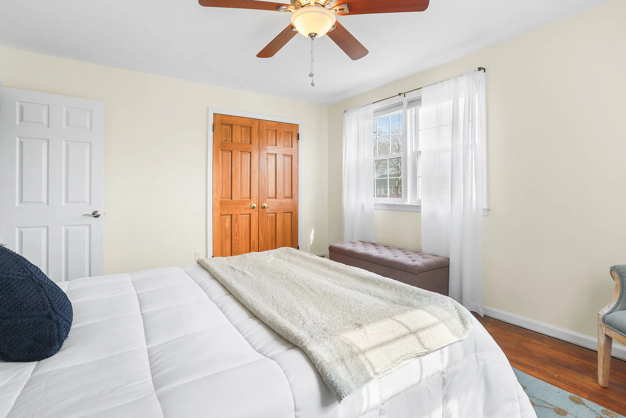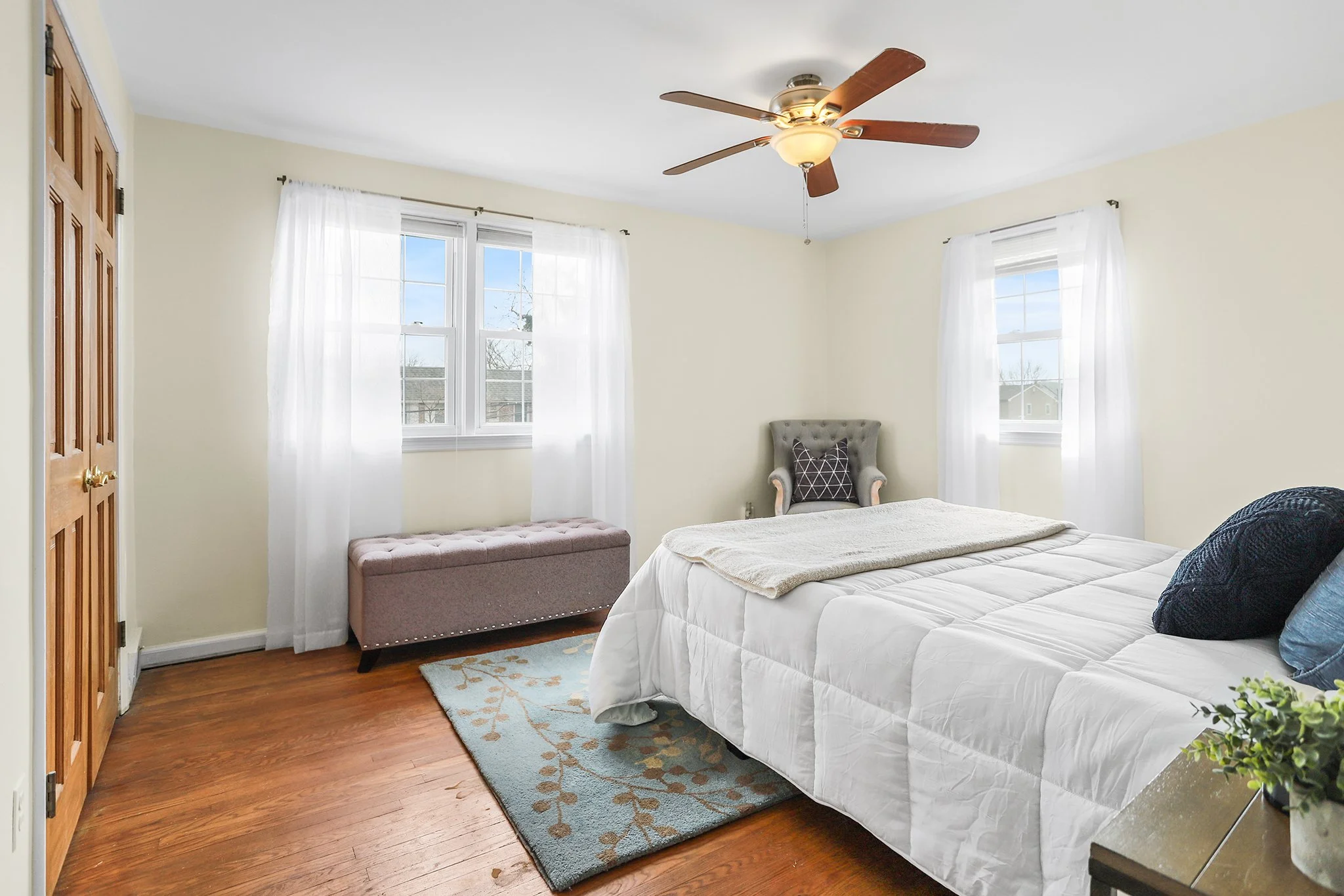 Upstairs includes three large bedrooms. The primary bedroom has an oversized closet with space for lots of storage. An updated hall bathroom includes a tub shower with ceramic tile surround. Two additional bedrooms with hardwood floors and a linen closet complete this level.