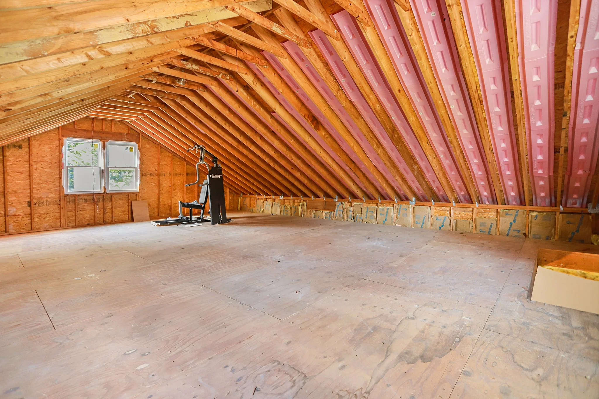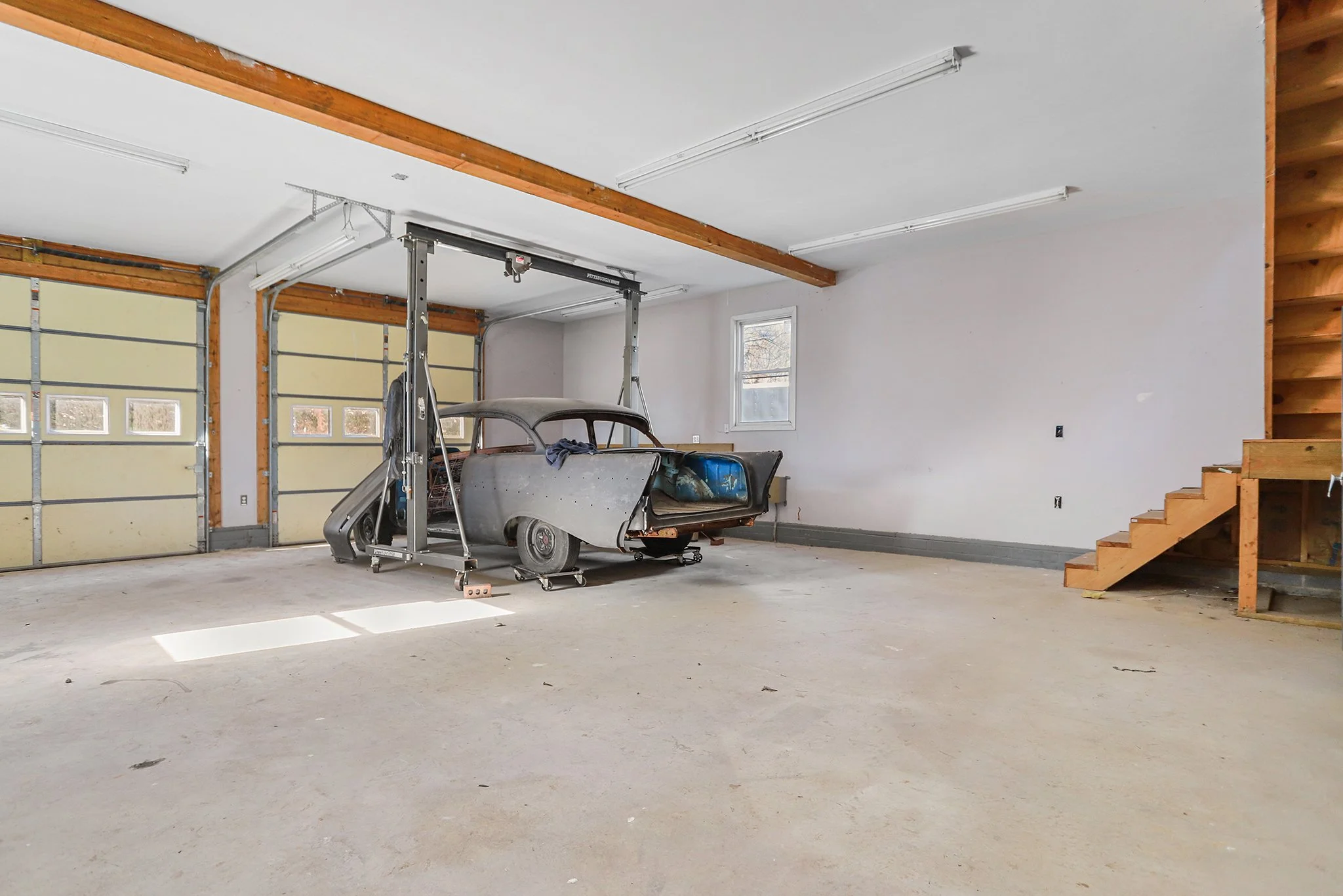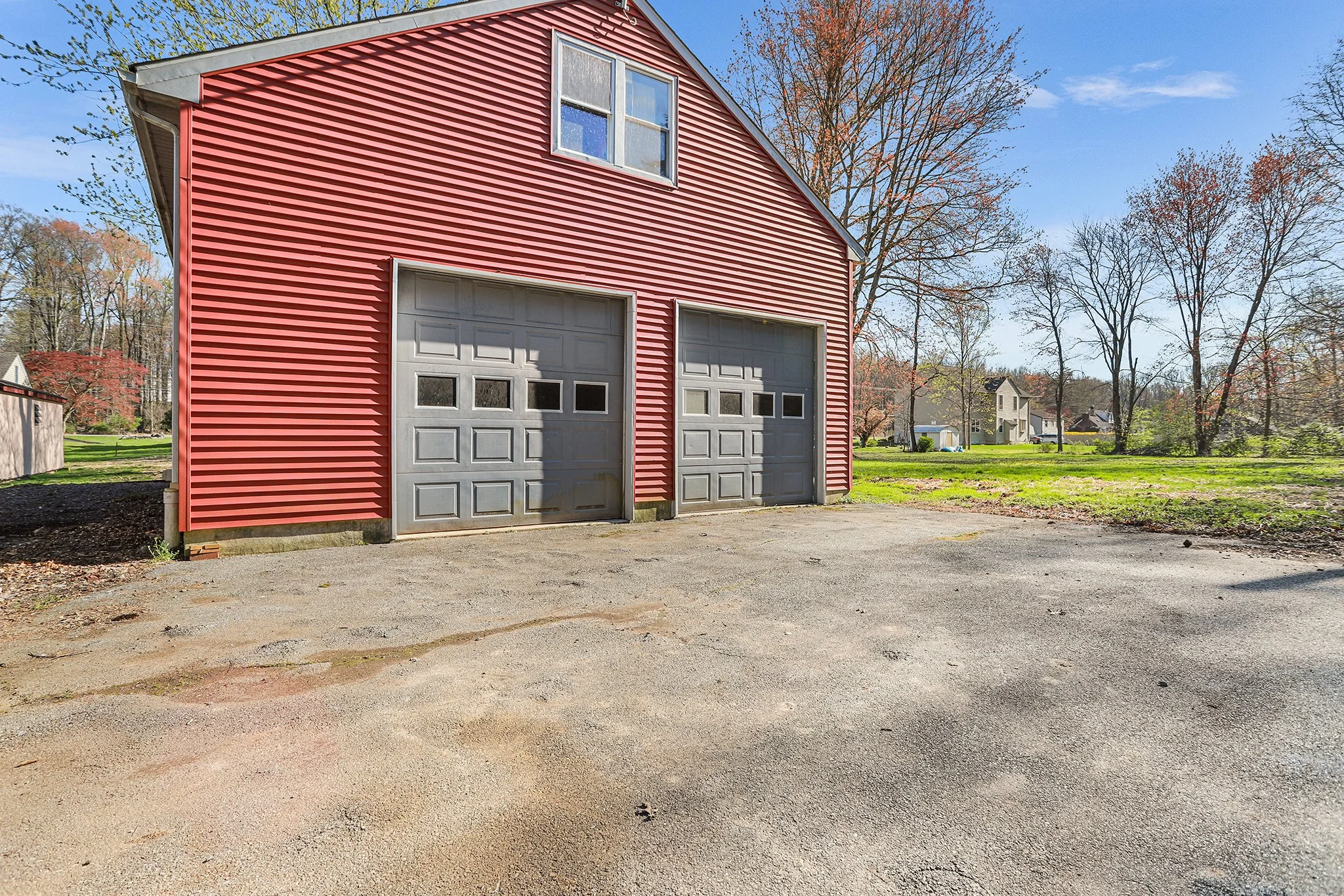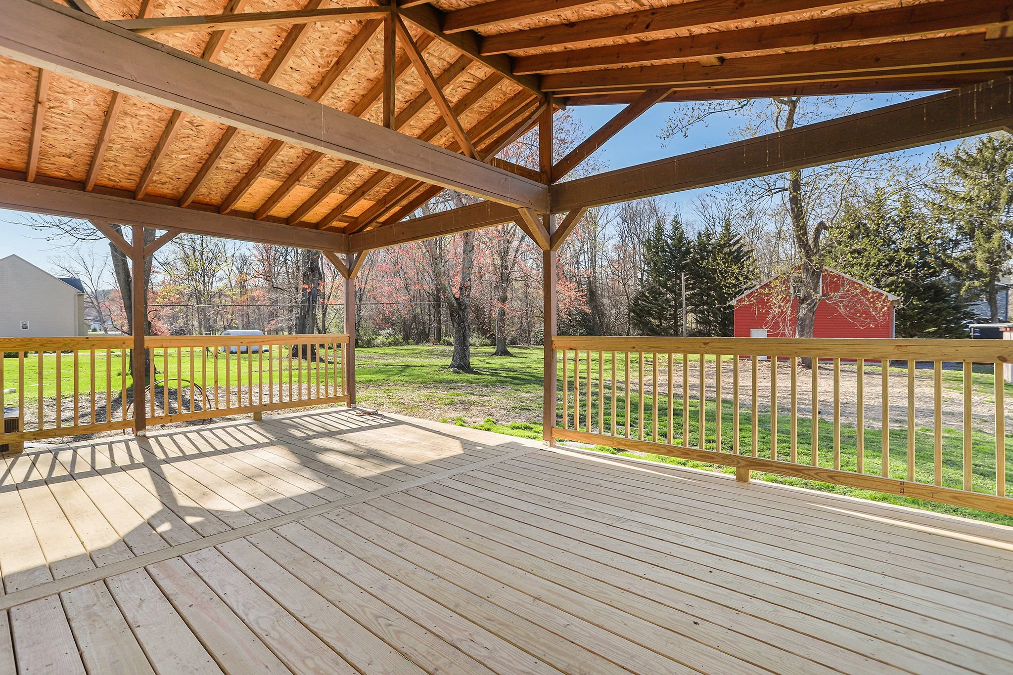 The outdoor living here is truly impressive, with a generous covered deck extending from the family room—ideal for entertaining, gardening, or relaxing with views of the vast, private level yard. Beyond the main house, a standout feature is the oversized two-story pole building, accessible via a secondary road. This building has room to work on two vehicles as well as an upstairs big enough for storage or a workshop. The entire property sits on a spacious, open lot .