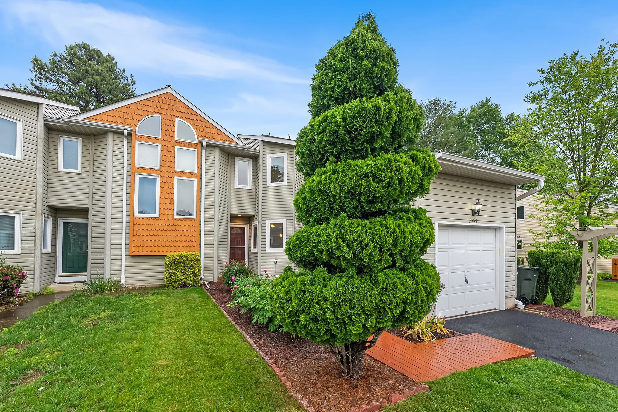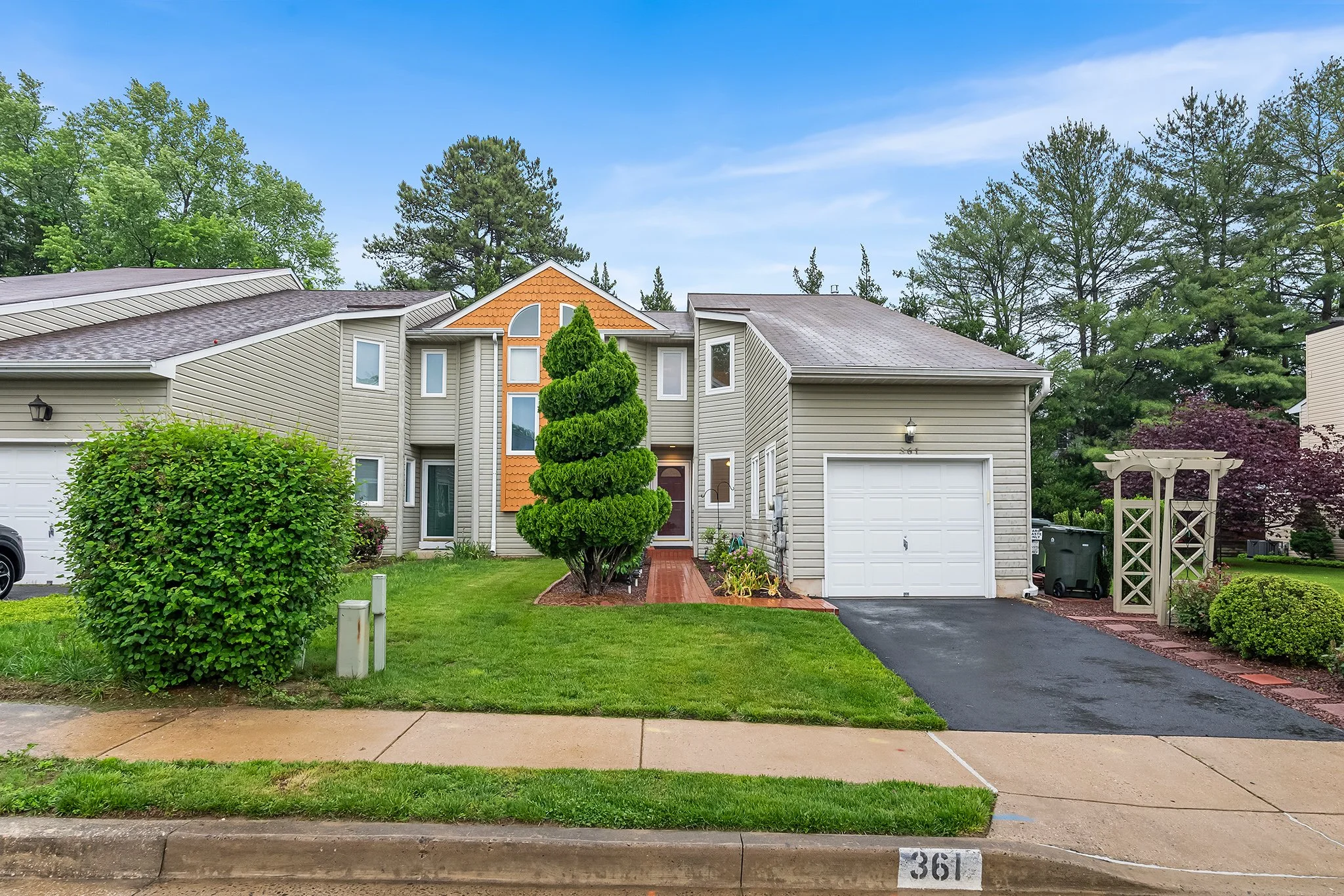 Welcome 361 Chickory Way, a beautifully maintained 3-bedroom, 2.5-bath end-unit townhome located in the desirable Country Place community in Newark, DE. The exterior boasts a beautifully manicured front and back lawn with lush landscaping that enhances curb appeal. Enjoy outdoor living on the private back deck, perfect for relaxing or entertaining, along with a quaint paver patio ideal for grilling or quiet evenings. As you enter the home, you’re welcomed into a central hallway featuring a nicely sized coat closet and a convenient powder room. To your immediate right is the bright and spacious eat-in kitchen, complete with tile flooring, updated granite countertops and backsplash, a gas range, and plenty of windows that fill the space with natural light. A large walk-in pantry provides ample storage. Convenient access to the attached one-car garage is located just off the kitchen; the garage includes an automatic door and built-in shelving for extra storage. The kitchen opens directly to the dining and family room combination, offering an inviting and functional open-concept layout. These spaces feature wall-to-wall neutral carpeting and complementary neutral paint colors. A cozy fireplace serves as a charming focal point in the family room, while two glass doors provide direct access to the back deck—perfect for indoor-outdoor living. Just off this space is a bonus room ideal for a home office, playroom, or reading nook, offering flexibility to suit your lifestyle. As you continue to the other side of the house, you’ll find a staircase framed by stunning floor-to-ceiling windows, creating a grand and airy feel as natural light floods the space.