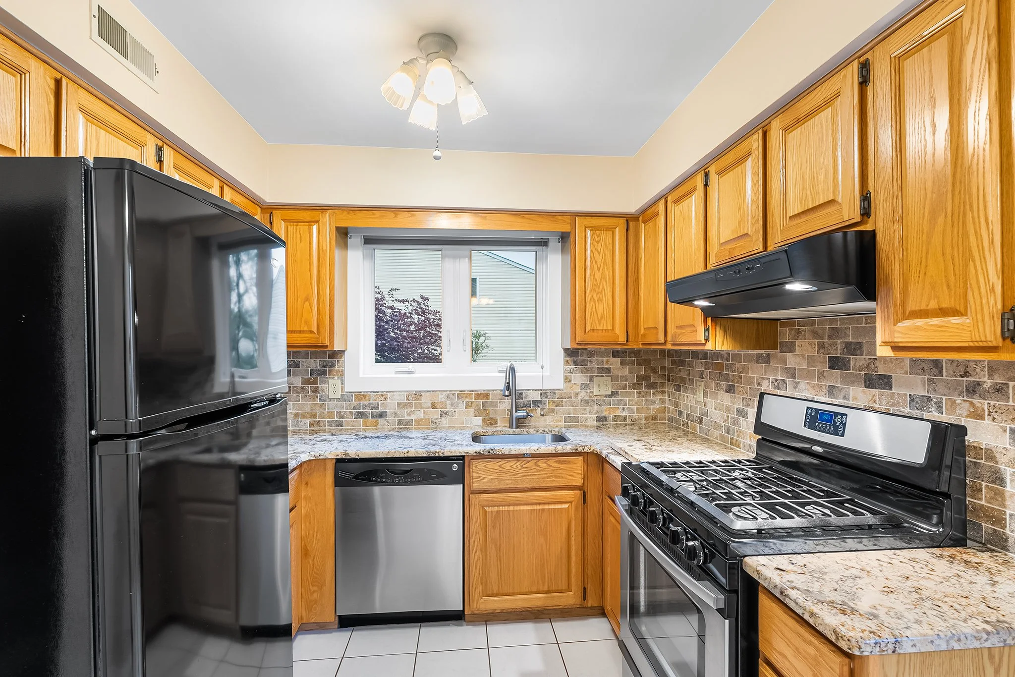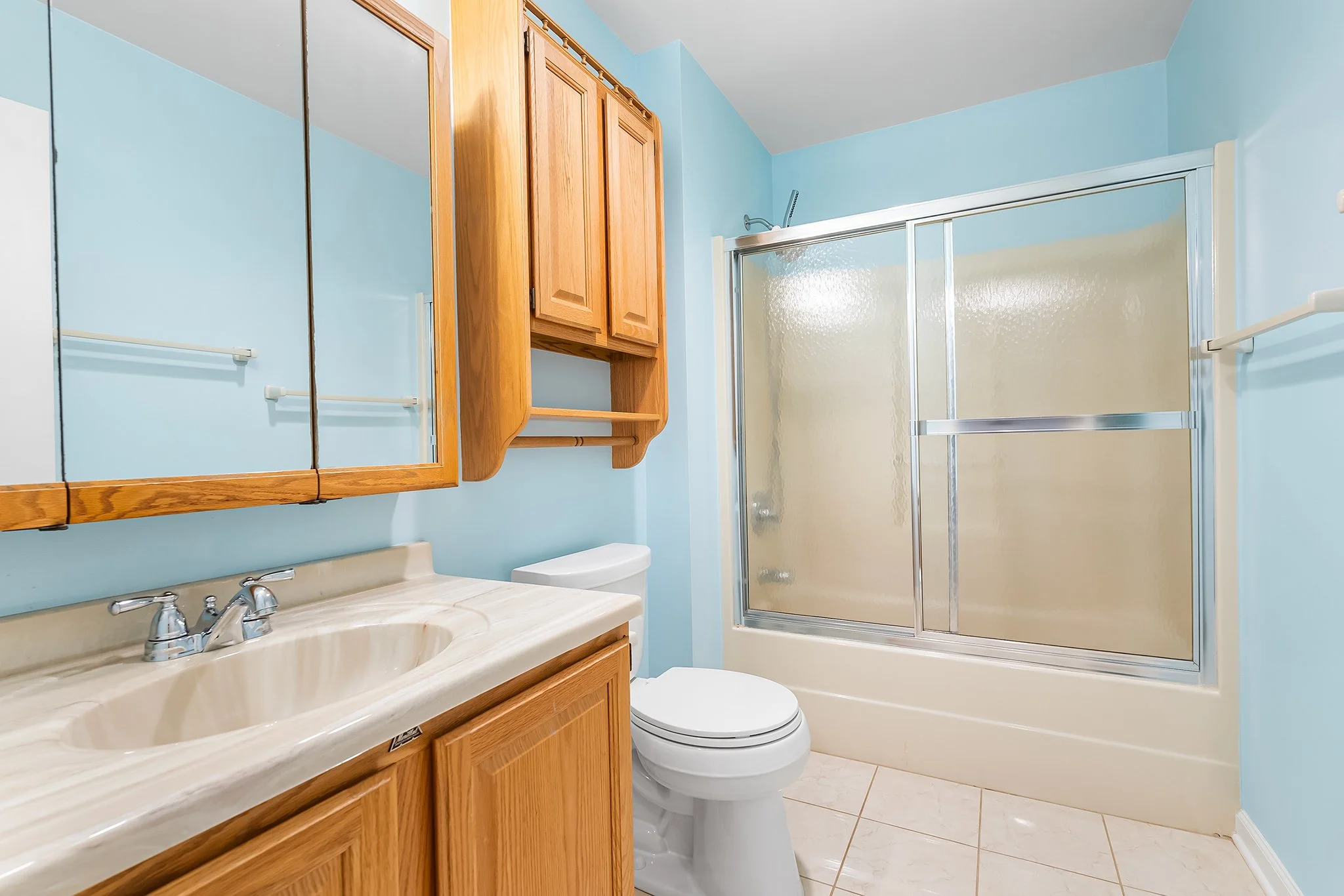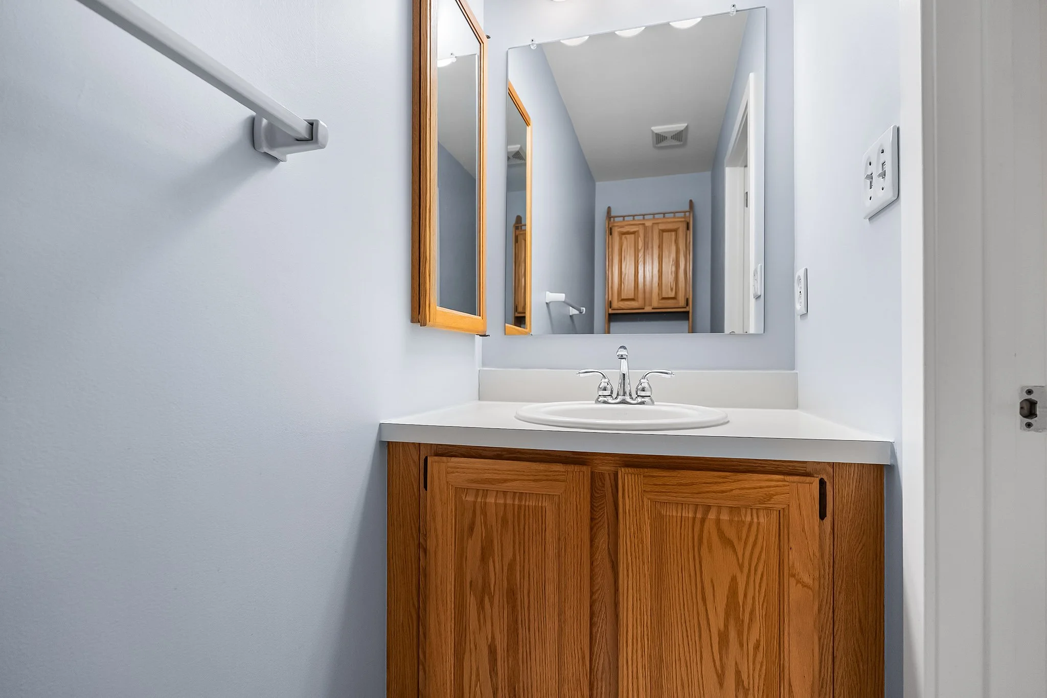 Two additional nicely sized bedrooms offer ample closet space and share a full hall bathroom. The bathroom features a tub/shower combination, tile flooring, a stylish cabinet, and an updated countertop.