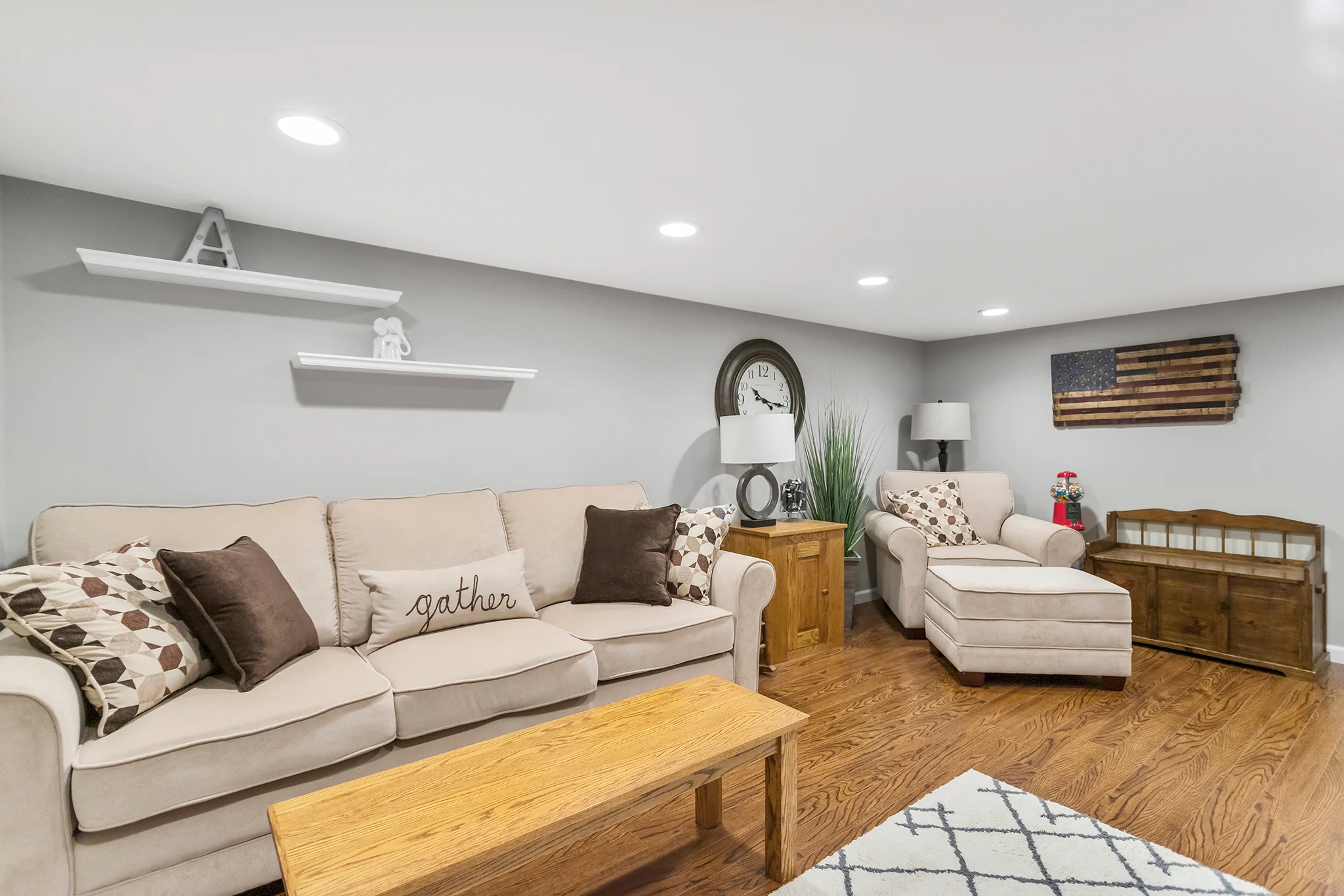 Finished daylight walk-out basement is almost like another residence, with a full bathroom, a large sunny bedroom, and a comfortable living/office space with a second two-sided fireplace. Separate storage room can be found here as well.